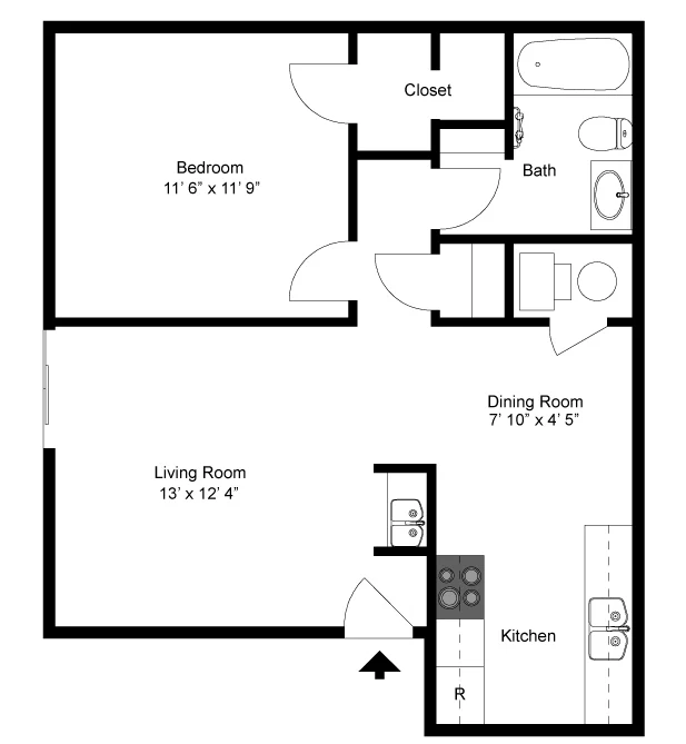 This is our Heather I floorplan with one bedroom, one bathroom, and 650 square feet of living space. Please call our friendly leasing staff for more information!